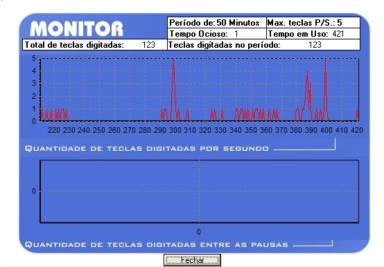 Shows reports of computer daily use (total of typed keys in each time between the pauses)